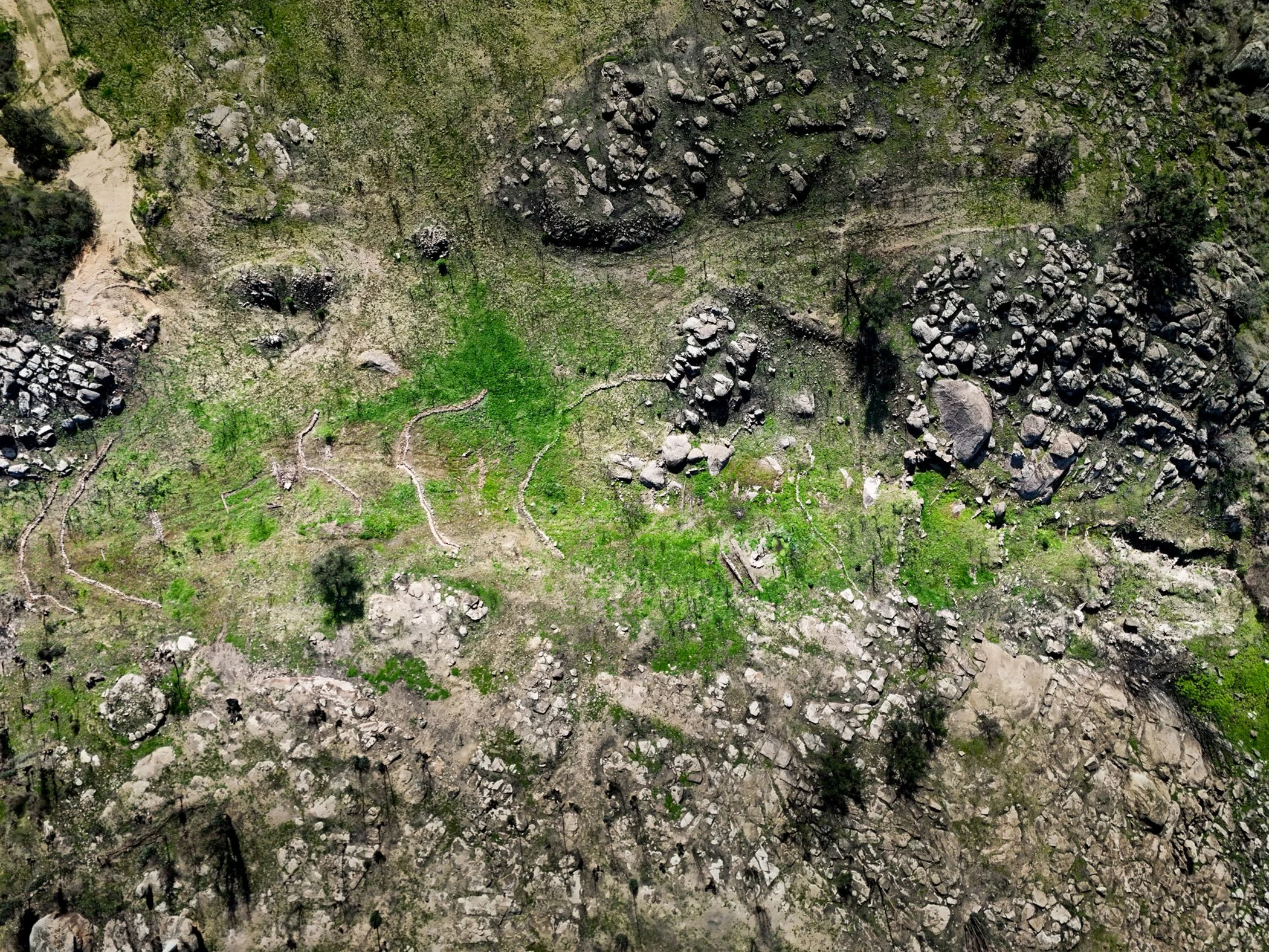 The work is grounded in principles of regenerative hydrology, combining direct observation of the land with traditional knowledge. Reading the landscape, particularly after the rainy season, makes it possible to identify where water accelerates, where erosion occurs, and where it can and should be retained.